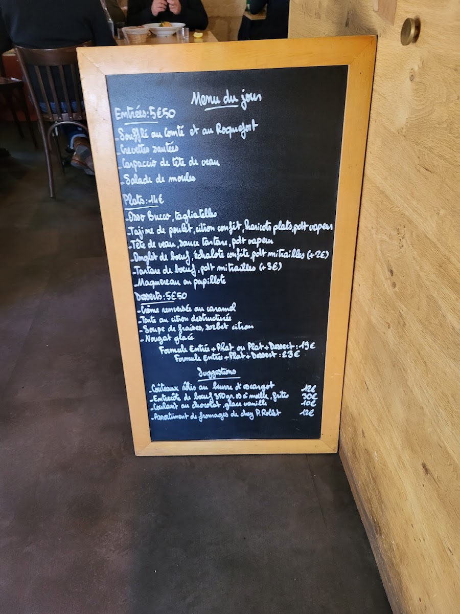 “ Very enjoyable dinner. The staff were incredibly nice and food was good and of good value. Great lively spot while visiting Bordeaux. The bone marrow was excellent. The squid ink risotto was good, although the ink didn’t had much complexity to it. The menu routinely changes. Worth the stop for a casual, quality dinner. Dessert was excellent. ”
